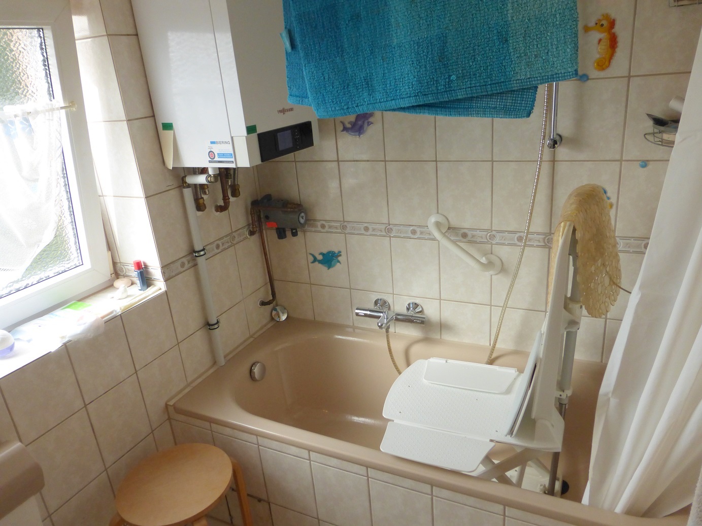 - Erdgeschoss, Küche inkl. Einbauküche, Abstellraum, Wohnzimmer mit Zugang zum Garten und Duschbadezimmer
