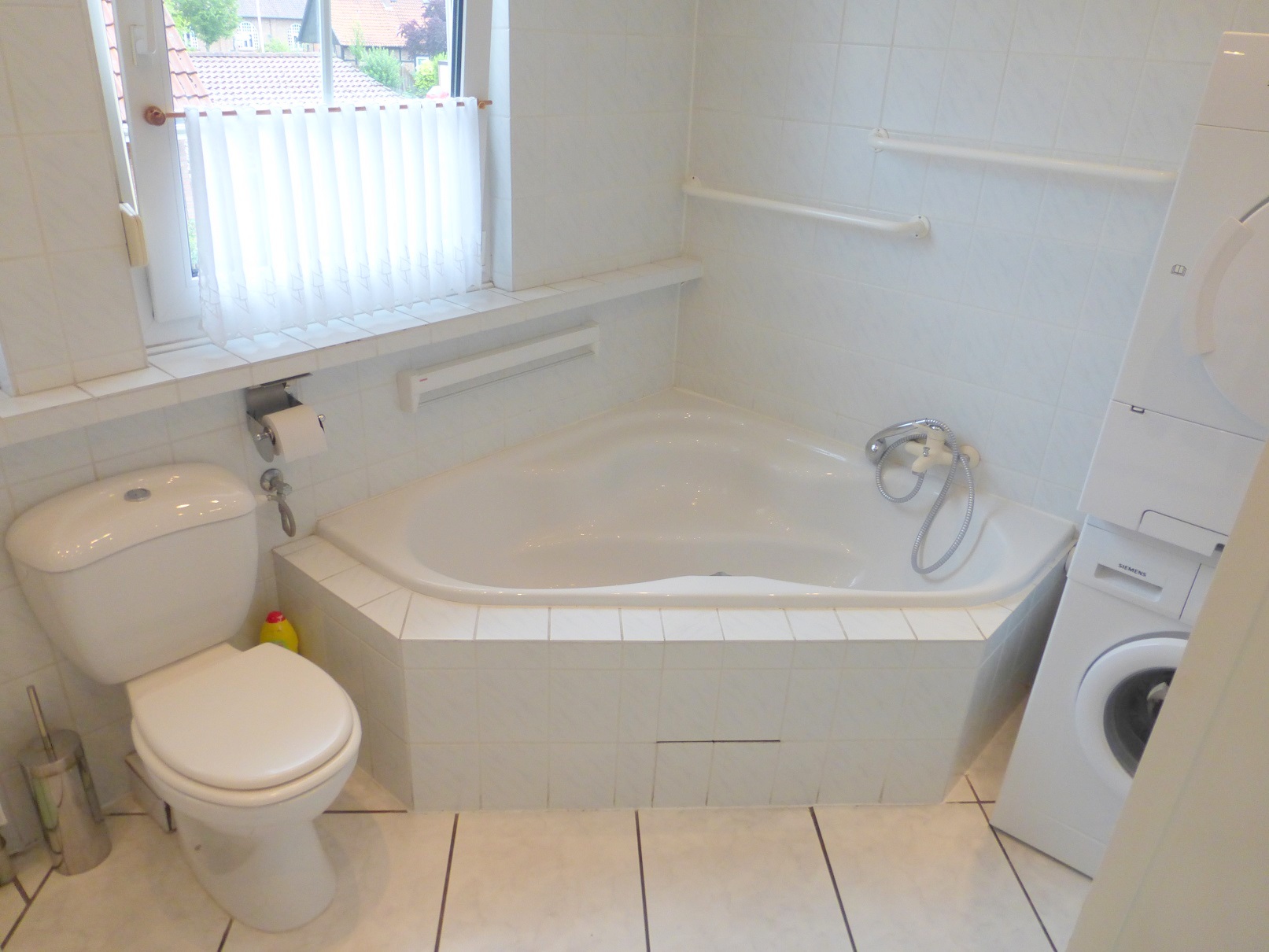 Im Obergeschoss befindet Sie ein schönes Badezimmer mit Eckwanne und Dusche. Hier haben Sie auch Platz für eine Waschmaschine und den Wäschetrockner. 3 großzügige Schlafzimmer bieten Ihnen Raum für Kinder und Büro. Hier liegt durchgängig helles Laminat.