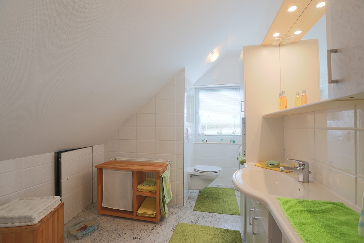 Des Weiteren befindet sich im Erdgeschoss ein großzügiges Badezimmer mit Wanne.